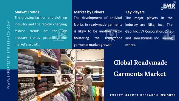 Unlike custom-made clothes, which are tailored to a specific person's measurements and preferences, readymade garments are produced with standard patterns and construction techniques to keep costs lower and are intended to fit most people without significant alteration. The readymade garments market growth is further driven by several key factors. These include changing consumer preferences, evolving fashion trends, a rising youth population, and the availability of a highly productive workforce, particularly women, at a reasonable price.