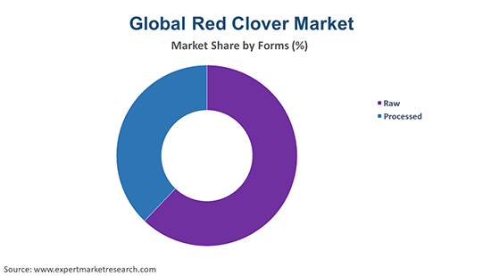 The market is being driven by the rising awareness of the health benefits of red clover. Red clover produces isoflavones that chemically turn into phytoestrogens naturally, which are highly useful because the oestrogen hormone in the human body is biologically imitated. A store of many vitamins, nutrients, and minerals, including potassium, thiamine, calcium, chromium, magnesium, niacin and phosphorus, and vitamin C, are contained in red clover. Red clover is also used as an aromatic ingredient in food in the food and beverage industries and imparts its therapeutic benefits when infused with tea. These favourable factors are expected to influence the market growth of red clover positively.