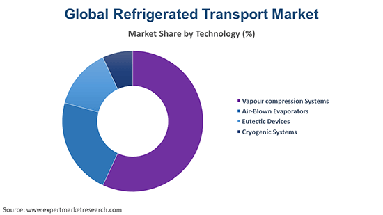 Vapour compression systems, air-blown evaporators, eutectic devices, and cryogenic systems are the major technologies of refrigerated transport considered in the market report.