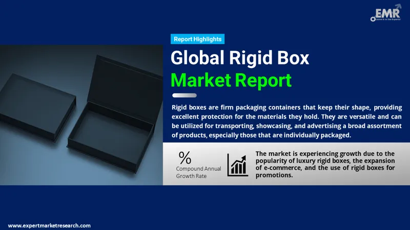 The key trends fuelling the growth of the market include rising popularity of luxury rigid boxes, expansion of the e-commerce sector, and increasing use of rigid boxes for promotions.