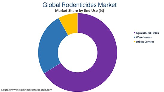 Agricultural fields, warehouses, and urban centres are the significant end uses of rodenticides. Urban centres are further divided into residential and commercial.