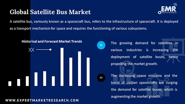 The rising demand for satellites in various end use industries is aiding the growth of the satellite bus industry. As the demand for enhanced data processing and effective global position systems (GPS) is significantly surging, satellites are increasingly deployed for such applications. This, in turn, is escalating the deployment of satellite buses to enable optimal launch and functioning of satellites, which is propelling the market growth. Moreover, the increasing use of small satellites in industries such as communication and IT are surging the requirement for satellite buses to meet mission demands, which is invigorating the market growth. The increasing launches of innovative small satellites by both private and public enterprises are expected to surge the deployment of satellite buses, which is projected to fuel the market growth. Furthermore, the rising demand for commercial-off-the-shelf (COTS) assembled satellite buses to enable the efficient launch of small satellites is expected to aid the market growth. Such developments are anticipated to surge the demand for satellite buses in various industries, such as defence and automotive, among others, and are estimated to fuel the market growth in upcoming years.