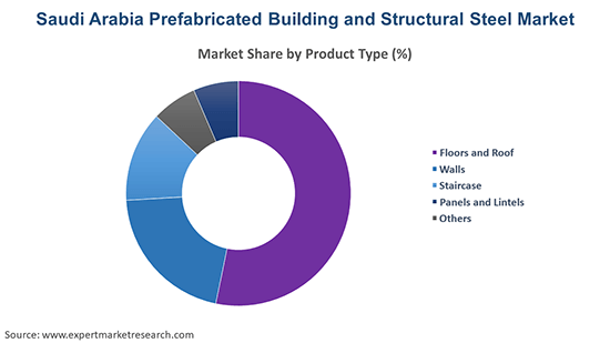 Key Insights: The Saudi Arabia prefabricated building and structural steel industry is expanding across all major product types, floors and roofs benefit from faster factory finished modules; walls gain from modular panelisation with enhanced insulation; staircases are delivered as preassembled units for consistent quality; panels and lintels allow for large openings and rapid structural assembly; and the others category (façade pods, utility modules, mezzanines) addresses specialized accommodation and MEP needs. For example, in March 2025, 3XNest signed a strategic partnership with a Saudi company to introduce foldable modular homes and units for labour housing and fast deployment residential projects in the region.