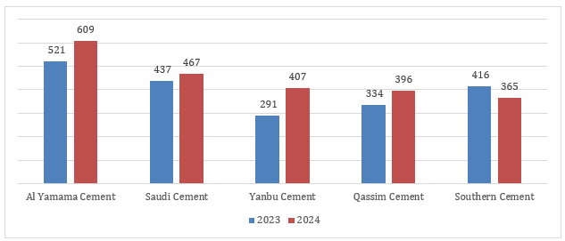Figure: Domestic Cement Sales (Thousand Tons) of Leading Producers in Saudi Arabia, 2023-24