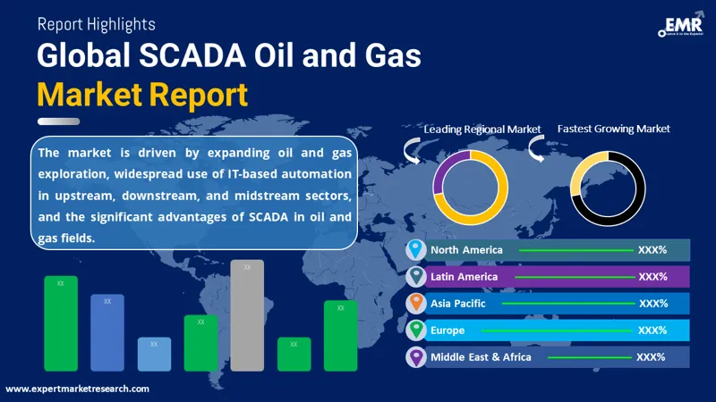 The regional markets for SCADA oil and gas are North America, Europe, Asia Pacific, Latin America, and the Middle East and Africa.