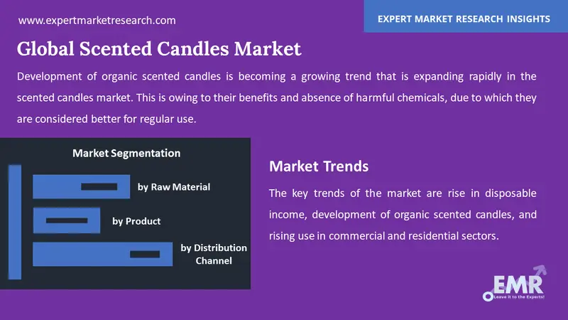 The key trends of the market are rise in disposable income, development of organic scented candles, and rising use in commercial and residential sectors.