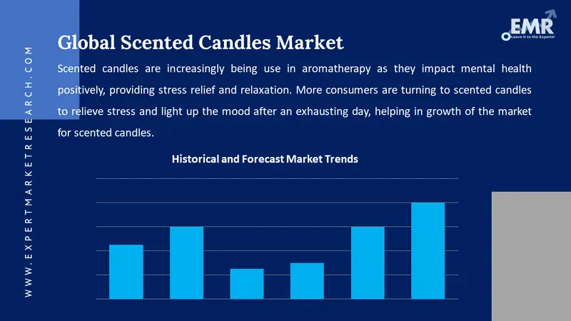 The market is driven by the development of therapeutic properties in candles, innovative scents, and increasing consumer preference for home ambiance and wellness products.
