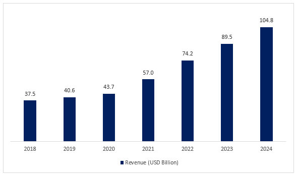 Figure: Revenue Generated by Smart Cities Globally, USD Billion, 2018-2024 (E)