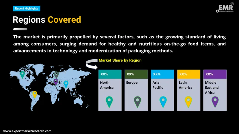 The major drivers of the market include the rise in the standard of living among consumers, increase in the demand for healthy and nutritional on-the-go food products, and technological advancements and modernisation in packaging techniques.