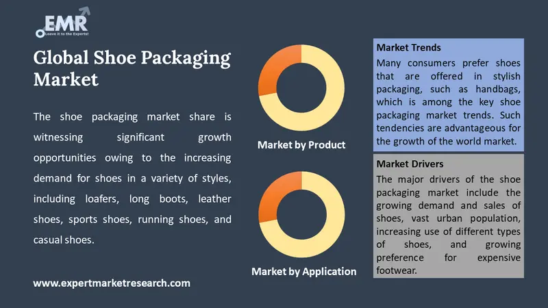 The use of sustainable packaging materials and the utilisation of shoe packaging for branding purposes are the key trends propelling the growth of the market.