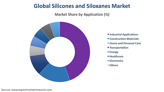 The various applications of siloxanes are silicones, among others, whereas silicones find applications in industrial applications, construction materials, home and personal care, transportation, energy, healthcare, and electronics, among others.