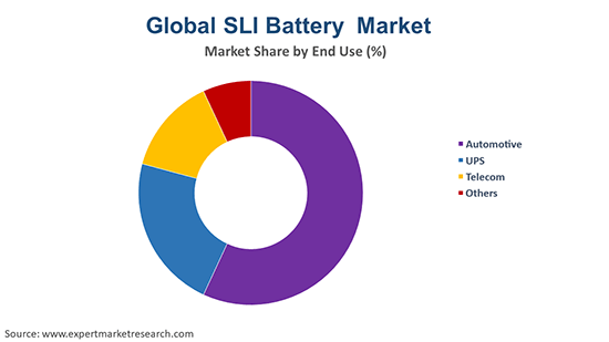 The automotive segment accounts for a major market share. This dominance is due to the massive annual production volume of vehicles worldwide, which necessitates a consistent supply of SLI batteries tailored for various automotive applications. In contrast, while the UPS and Telecom segments also utilise SLI batteries, their demand is significantly lower than that of the automotive sector. The UPS segment primarily relies on batteries for backup power solutions.