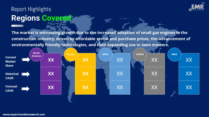 The major regional markets for small gas engines are North America, Latin America, the Asia Pacific, Europe, and the Middle East and Africa.