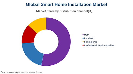 OEM, retailers, e-commerce, and professional service providers are the various distribution channels of smart home installation.