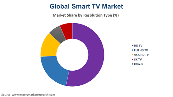 HD TV, Full HD TV, 4K UHD TV, and 8K TV, among others are the major resolution types of the product in the market.