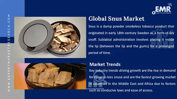 The snus demand is influenced by the introduction of flavoured varieties and an increase in marketing efforts to attract people looking for alternatives to smoking. The market dynamics are also influenced by factors such as consumer preferences, regulatory changes, and health awareness.