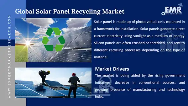 The major drivers of the market include the increasing installation of solar panels due to favourable government initiatives and surging R&D activities in recycling technology by key players.