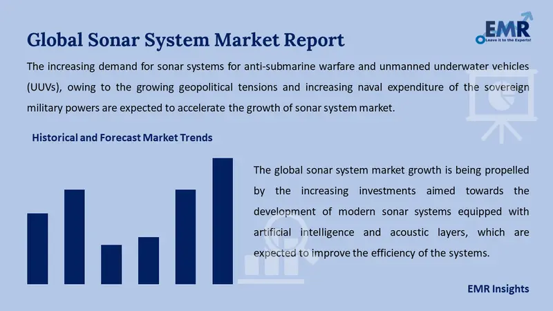 The key trends in the market include the increasing accessibility of sonar systems, and rising investments aimed towards the development of modern sonar systems equipped with artificial intelligence and acoustic layers.