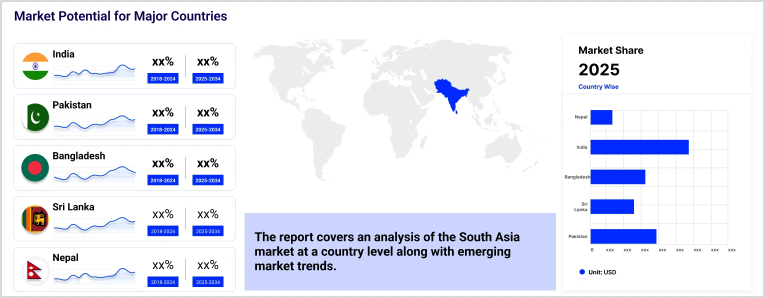 India, Pakistan, Bangladesh, Sri Lanka, and Nepal, among others, are the major regions in the market.