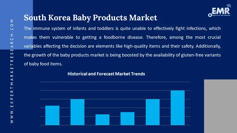 The numerous health advantages linked to the usage of these goods and their effectiveness, which have been demonstrated over time, will be key factors in the market's expansion. Due to the significant growth in consumer spending power, there will be greater demand for and purchases of these items in order to maintain the wellness and hygiene of newborns. Baby skin is extremely delicate and sensitive, necessitating extra care. Parents seek to protect their infant from any dangerous chemicals emitted by unbranded baby goods, which they purchase since they are less expensive. People are capable as well as willing to spend on premium baby products, which is also aiding the development of the South Korea baby products market.
