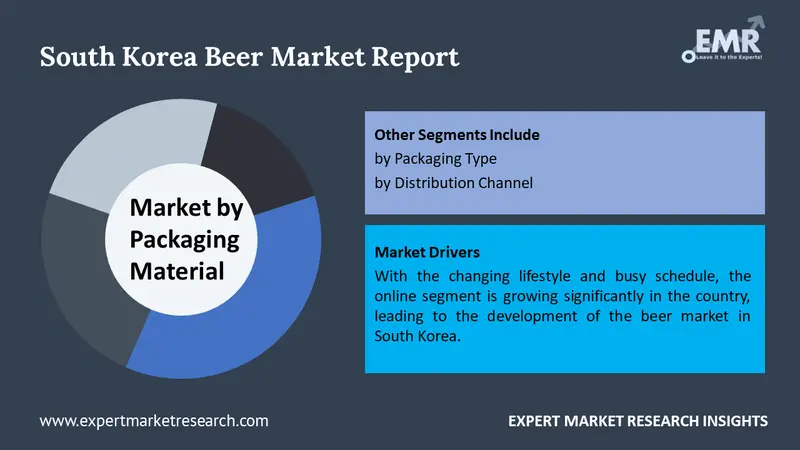 Bottled packaging continues to boost beer demand in South Korea through restaurants and upscale bars. The presentation quality and durability make bottles the preferred format in places where brand positioning and visual presentation matter. Many South Korean breweries have incorporated unique bottle designs with embossed logos, catering to B2B clients who want exclusivity and strong shelf presence. Additionally, the container return programme subsidised by the government lowers net packaging cost, making it economically viable for volume purchasers.