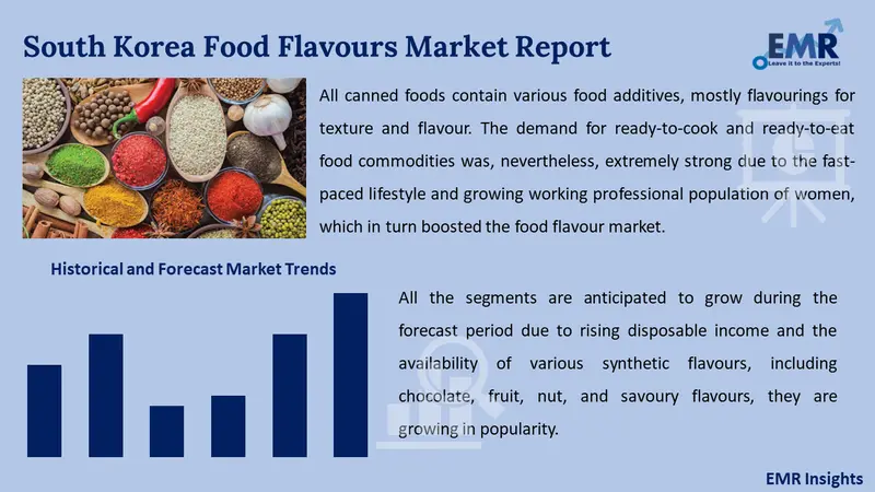 Continuous research and development, the growing demand for nostalgic, exciting and exotic flavours, rising disposable income, and high living standards are the major drivers in the South Korea food flavour market.