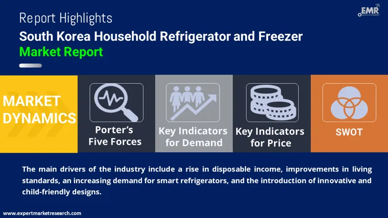The rise in disposable income, improved living standards, increasing demand for smart refrigerators, and the launch of innovative and kid-friendly designs are the major industry drivers.