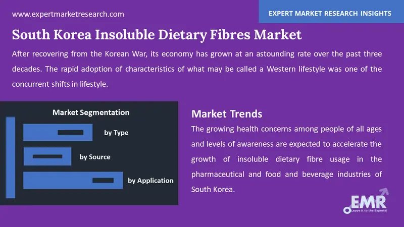 The health benefits of consuming insoluble dietary fibre and its awareness among the general population are the leading trends of the insoluble dietary fibre industry in South Korea.