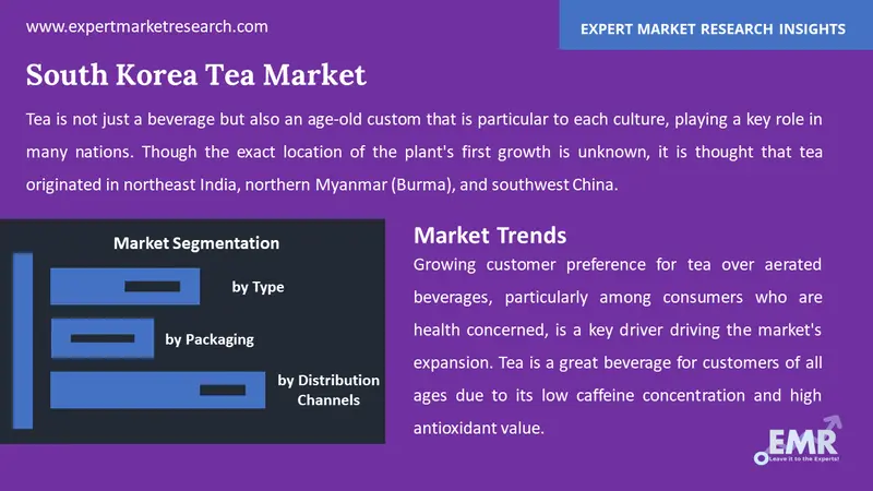 Growing consumer demand for eco-friendly packaging options is fueling the expansion of the South Korea tea industry. Growing demand for soothing and aromatic beverages is propelling the growth of the South Korea tea industry. Some significant factors influencing market expansion include increased globalisation, awareness regarding health benefits, rising demand for lifestyle goods, and rising disposable income. As the market is expected to see more packaging innovation because of increasing competition and high demand, the market is anticipated to flourish further during the forecast period.
