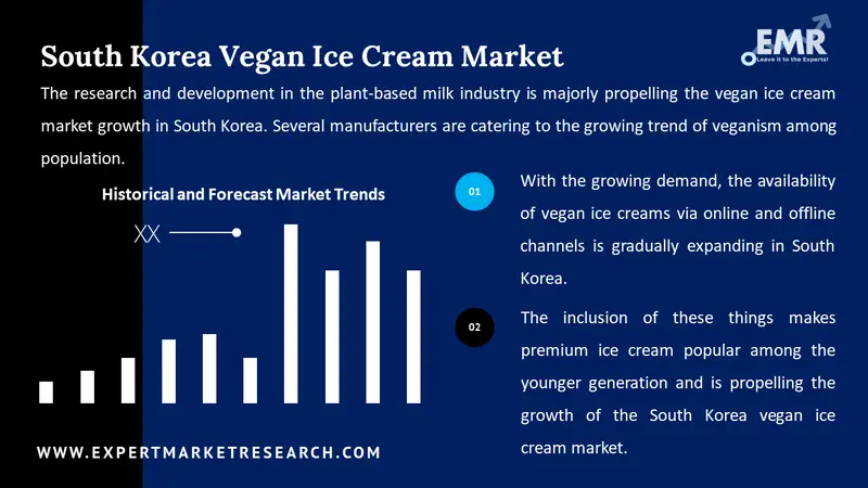 Premiumisation, health benefits, increased social media usage and awareness regarding veganism, growth of R&D work, increased disposable income and high living standards are the major trends of the vegan ice cream industry in South Korea.