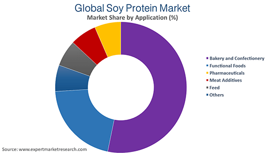 According to the soy protein market analysis, the market is primarily driven by the pharmaceutical industry, where it is utilised in the development of protein-based medicines and supplements. Due to its high digestibility and amino acid profile, it is an effective ingredient in therapeutic nutrition, supporting muscle health, immunity, and recovery. Furthermore, soy protein is ideal for creating lactose-free or vegan alternatives. In May 2024, Otsuka Pharmaceutical Co., Ltd. and its subsidiary, Korea Otsuka Pharmaceutical Co., Ltd., announced the online release of the whole-soy nutrition bar, SOYJOY, in South Korea. It will be available in Health and Beauty stores and convenience stores from June 2024, highlighting soy’s health benefits.