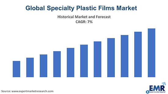 The global speciality plastic films market is projected to grow at a CAGR of nearly 7.00% in the forecast period of 2026-2035.