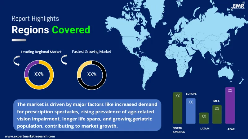 The major market drivers include the surging demand for prescription spectacles, the growing prevalence of age-related vision impairment, and the increasing geriatric population.