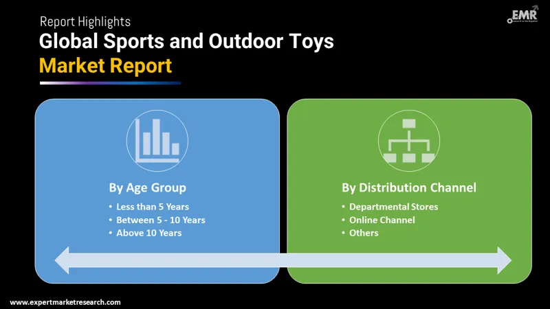 The various age groups in the market for sports and outdoor toys include less than 5 years, between 5-10 years, and above 10 years.