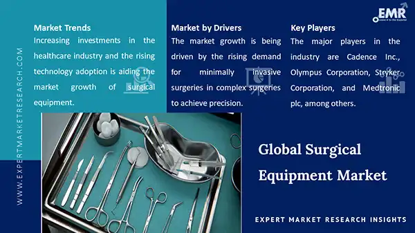 The major drivers include the growing inclination towards minimally-invasive procedures, rising cases of surgery, and growing demand for advanced surgical equipment.
