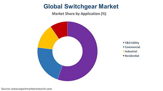 The various applications of switchgear include T&D utility, commercial, industrial, and residential.