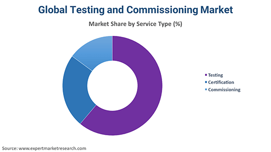 Testing, certification, and commissioning are the various service types in the market.