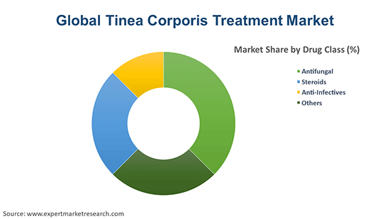 Based on drug class, the antifungal segment accounts for a significant share in the tinea corporis treatment industry. This can be attributed to their highly-effective nature. Moreover, they are the only viable option as far as the treatment of fungal diseases is concerned. Furthermore, a key reason for the dominance of the antifungal segment is the availability of numerous ways of using them. For instance, antifungal treatment is available in the form of drugs, creams, shampoos, and others. Additionally, the ease with which the customer can buy these antifungals plays a major role in the success of this segment.