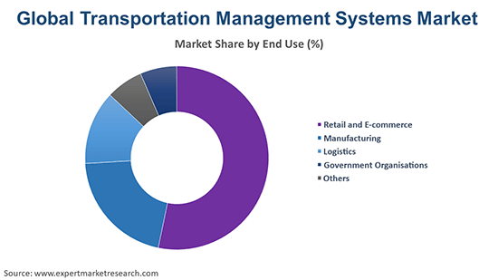 The significant end uses of transportation management systems in the market include retail and e-commerce, manufacturing, logistics, and government organisations, among others.