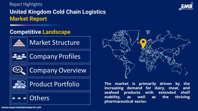 The competitive landscape consists of Lineage Logistics Holdings, LLC, Culina Logistics Limited, NewCold Cooperative UA, FreshLinc Limited, Kerry Logistics Network Limited, Americold Logistics, Inc., Seafast Logistics PLC, Blacksmith Freight Ltd, AH United Kingdom Holdco 1 Limited, and Cool Cargo United Kingdom, among others.
