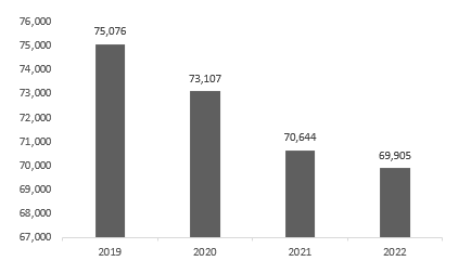 In 2022, the Federal Deposit Insurance Corporation recorded 69,905 US bank branches.