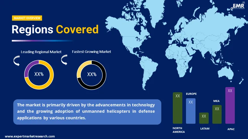 The global unmanned helicopter market would likely grow at a CAGR of 15.10% during 2026-2035. Asia, Pacific, North America and Europe are likely to be key markets.