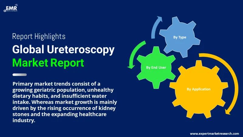 The factors driving the growth of the ureteroscopy market include technological advancements in endoscopic equipment, growing demand for minimally invasive procedures, expanding applications of ureteroscopy, and improvements in healthcare infrastructure and reimbursement policies. Further, the rising burden of urinary tract stones is a significant driver of this market. The integration of telemedicine and remote monitoring technologies into urological practice is impacting the delivery of ureteroscopy services. Remote monitoring of patients undergoing ureteroscopy procedures enables real-time assessment of outcomes and early detection of complications, enhancing patient safety and continuity of care, which is expected to increase the market demand.
