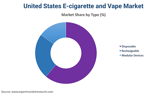 Innovation in device technology is sharpening the user experience and differentiating e-cigarette and vape products in the United States. Some of the advances include temperature control, battery enhancements, modular designs, app integration, IoT features, and biometric authentication. In February 2024, Arizona-based Iveda launched IvedaAI Sense, an AI sensor that detects smoke, vapor particles, and bullying incidents with high precision and accuracy. Smart devices are also emerging as a major market segment.
