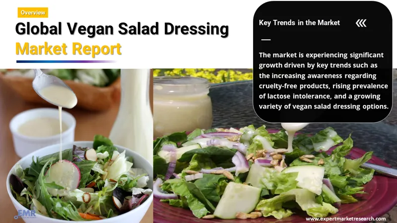 The increasing awareness regarding cruelty-free products, rising prevalence of lactose intolerance, and growing variety of vegan salad dressing options are the key trends propelling the growth of the market.