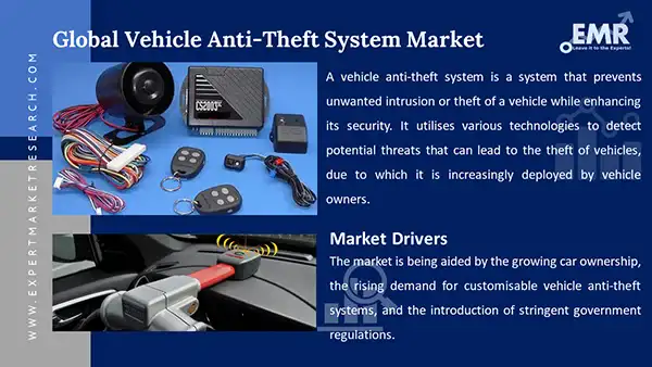 The major market drivers include growing car ownership, the rising demand for customisable vehicle anti-theft systems, and the introduction of stringent government regulations aimed at increasing the safety of vehicles.