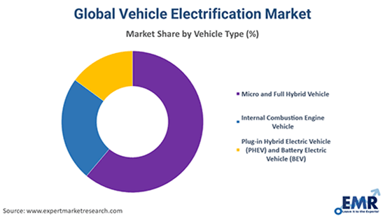 Expansion of electric vehicle charging infrastructure; integration of autonomous and connected technologies; technological advancements and innovations; and the growing emphasis on sustainability are favouring the vehicle electrification market expansion.