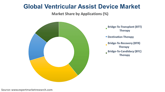 The significant applications in the industry are bridge-to-transplant (BTT) therapy, destination therapy, bridge-to-recovery (BTR) therapy, and bridge-to-candidacy (BTC) therapy.