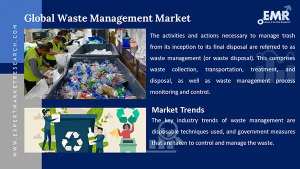 The key market trends of waste management are rising popularity of various disposal techniques, increasing awareness among consumers regarding waste and sustainability, and the growing adoption of construction and demolition materials for construction purposes.