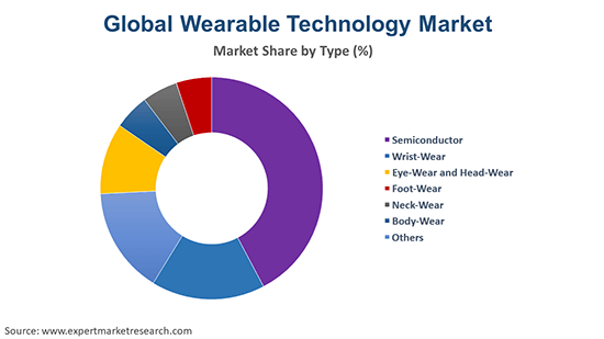 The major product of wearable technology in the market are wrist-wear, eye-wear and head-wear, foot-wear, neck-wear, and body-wear, among others.